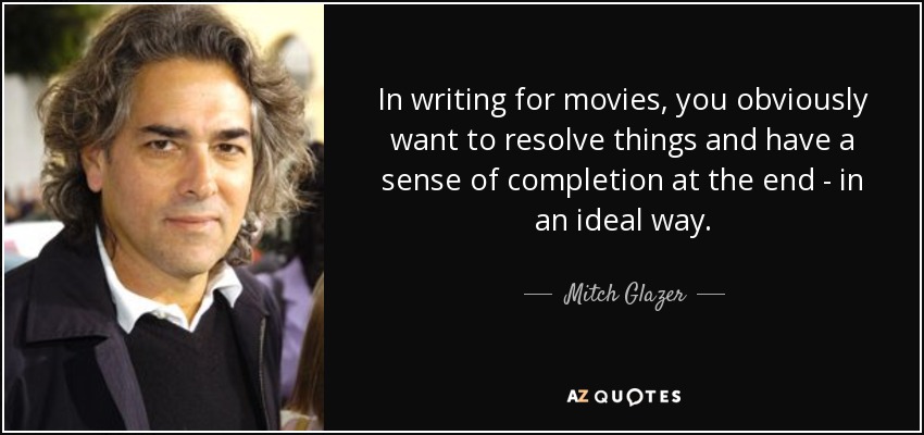 In writing for movies, you obviously want to resolve things and have a sense of completion at the end - in an ideal way.
