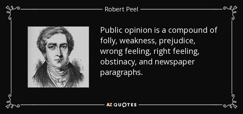 Public opinion is a compound of folly, weakness, prejudice, wrong feeling, right feeling, obstinacy, and newspaper paragraphs.