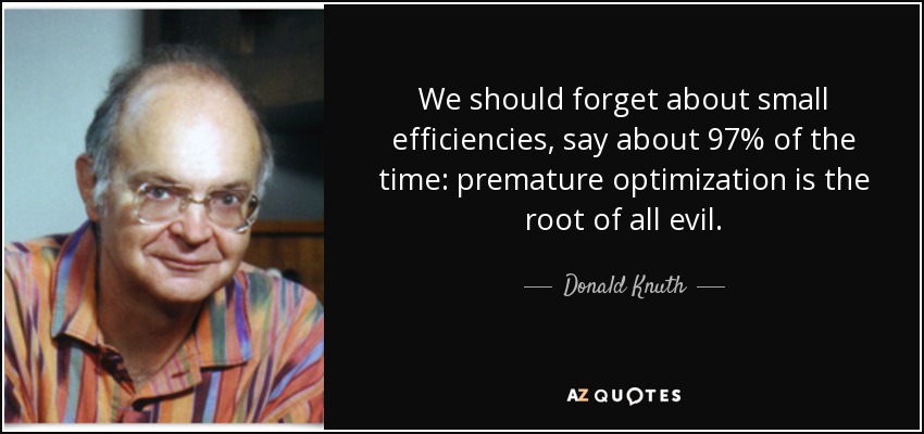 We should forget about small efficiencies, say about 97% of the time: premature optimization is the root of all evil.