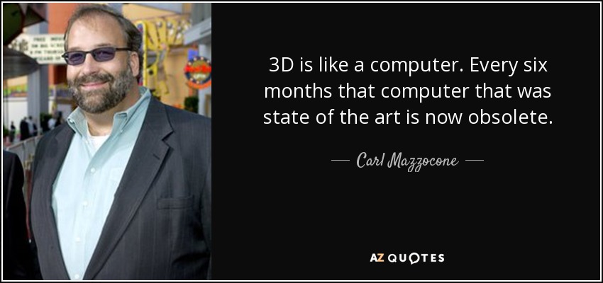 3D is like a computer. Every six months that computer that was state of the art is now obsolete.