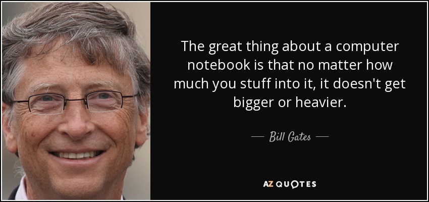 The great thing about a computer notebook is that no matter how much you stuff into it, it doesn't get bigger or heavier.