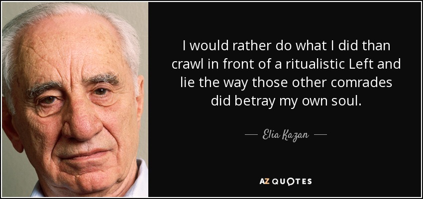 I would rather do what I did than crawl in front of a ritualistic Left and lie the way those other comrades did betray my own soul.