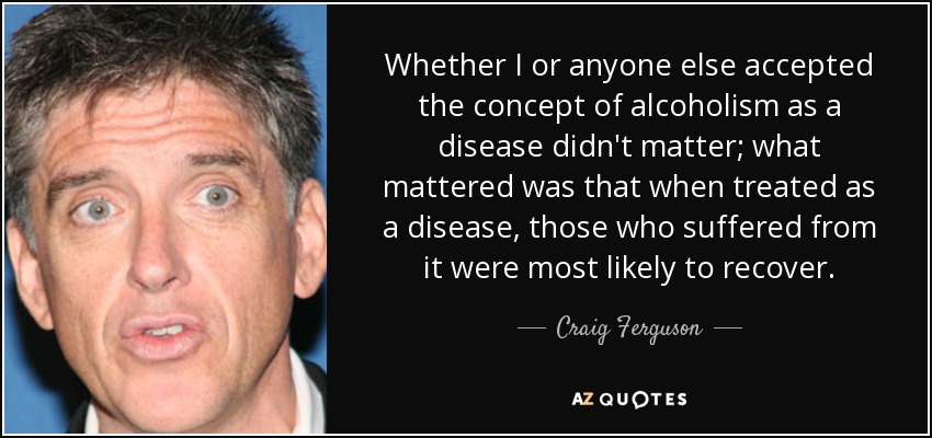 Whether I or anyone else accepted the concept of alcoholism as a disease didn't matter; what mattered was that when treated as a disease, those who suffered from it were most likely to recover.