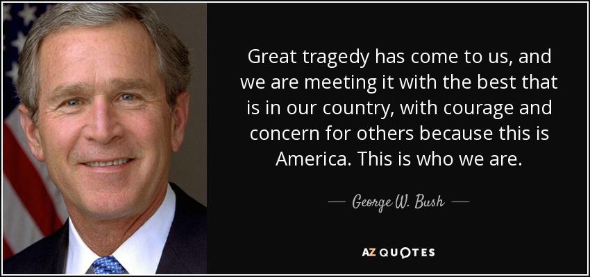 Great tragedy has come to us, and we are meeting it with the best that is in our country, with courage and concern for others because this is America. This is who we are.