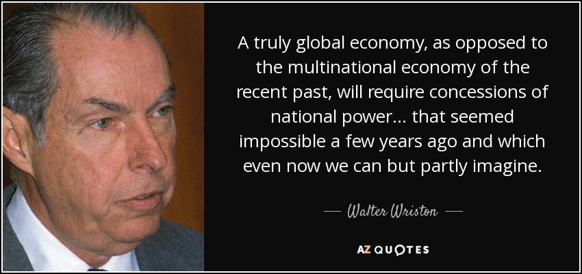 A truly global economy, as opposed to the multinational economy of the recent past, will require concessions of national power ... that seemed impossible a few years ago and which even now we can but partly imagine.