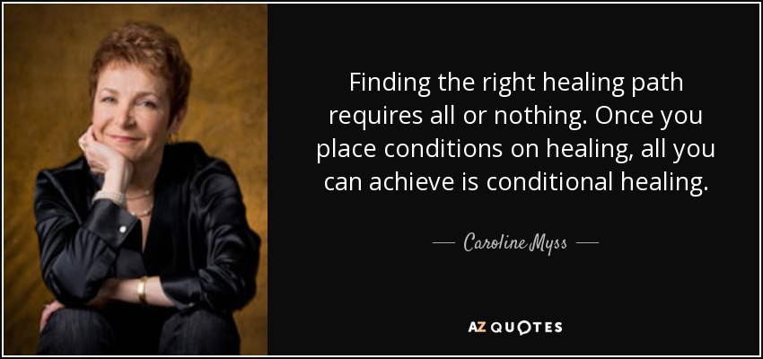 Finding the right healing path requires all or nothing. Once you place conditions on healing, all you can achieve is conditional healing.