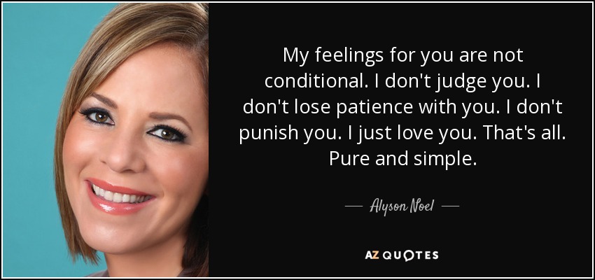 My feelings for you are not conditional. I don't judge you. I don't lose patience with you. I don't punish you. I just love you. That's all. Pure and simple.