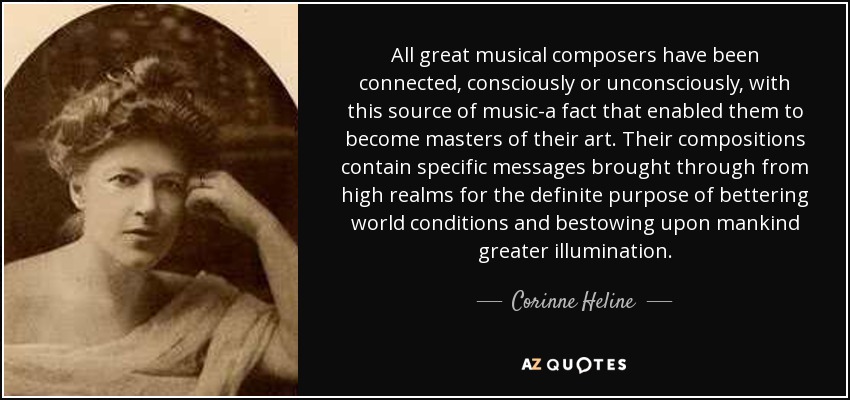 All great musical composers have been connected, consciously or unconsciously, with this source of music-a fact that enabled them to become masters of their art. Their compositions contain specific messages brought through from high realms for the definite purpose of bettering world conditions and bestowing upon mankind greater illumination.