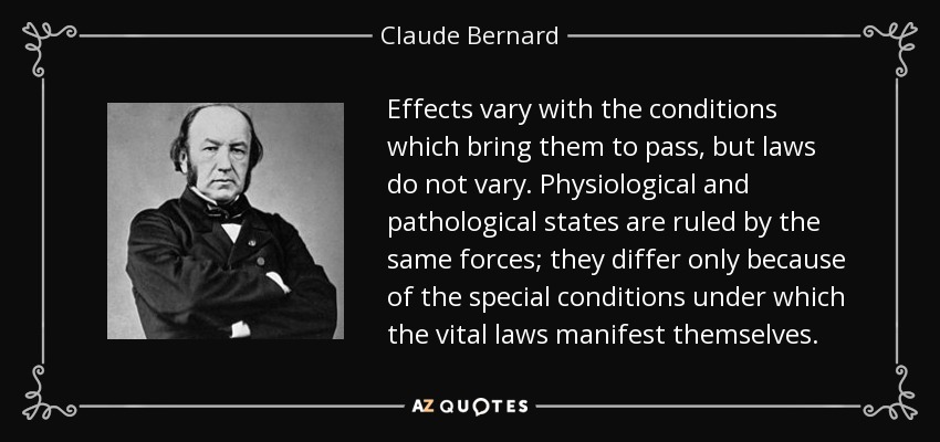 Effects vary with the conditions which bring them to pass, but laws do not vary. Physiological and pathological states are ruled by the same forces; they differ only because of the special conditions under which the vital laws manifest themselves.