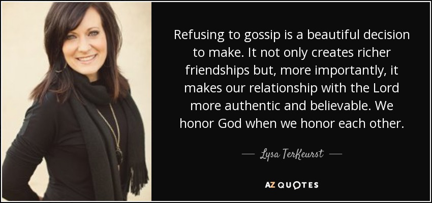 Refusing to gossip is a beautiful decision to make. It not only creates richer friendships but, more importantly, it makes our relationship with the Lord more authentic and believable. We honor God when we honor each other.