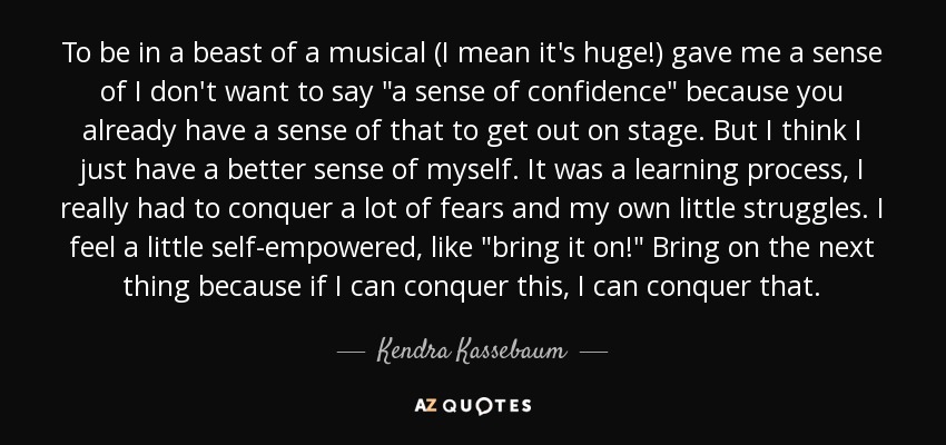 To be in a beast of a musical (I mean it's huge!) gave me a sense of I don't want to say "a sense of confidence" because you already have a sense of that to get out on stage. But I think I just have a better sense of myself. It was a learning process, I really had to conquer a lot of fears and my own little struggles. I feel a little self-empowered, like "bring it on!" Bring on the next thing because if I can conquer this, I can conquer that.