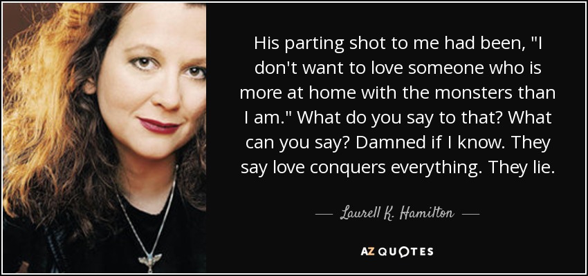 His parting shot to me had been, "I don't want to love someone who is more at home with the monsters than I am." What do you say to that? What can you say? Damned if I know. They say love conquers everything. They lie.