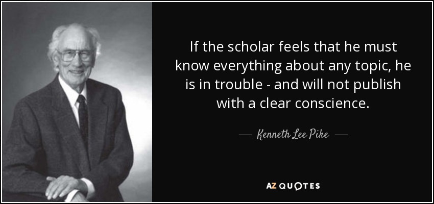 If the scholar feels that he must know everything about any topic, he is in trouble - and will not publish with a clear conscience.