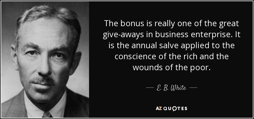 The bonus is really one of the great give-aways in business enterprise. It is the annual salve applied to the conscience of the rich and the wounds of the poor.