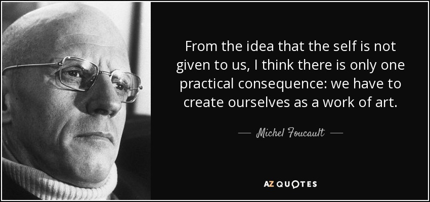 From the idea that the self is not given to us, I think there is only one practical consequence: we have to create ourselves as a work of art.