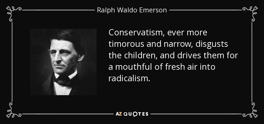 Conservatism, ever more timorous and narrow, disgusts the children, and drives them for a mouthful of fresh air into radicalism.