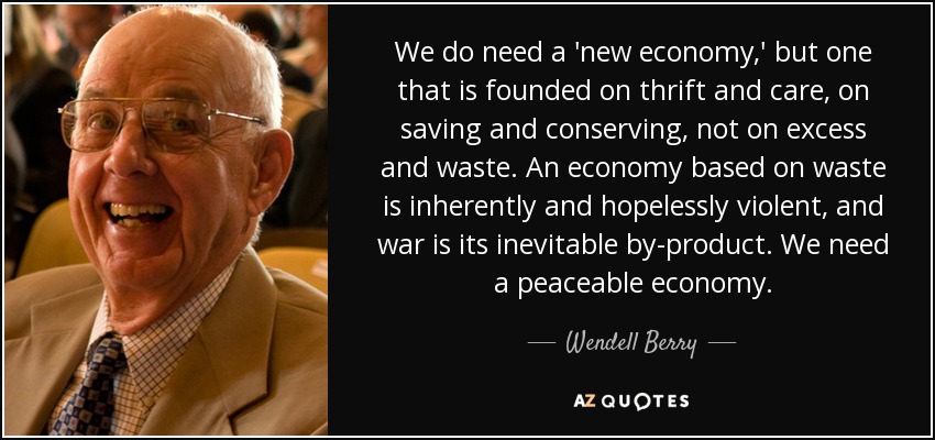 We do need a 'new economy,' but one that is founded on thrift and care, on saving and conserving, not on excess and waste. An economy based on waste is inherently and hopelessly violent, and war is its inevitable by-product. We need a peaceable economy.