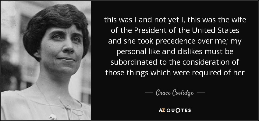 this was I and not yet I, this was the wife of the President of the United States and she took precedence over me; my personal like and dislikes must be subordinated to the consideration of those things which were required of her
