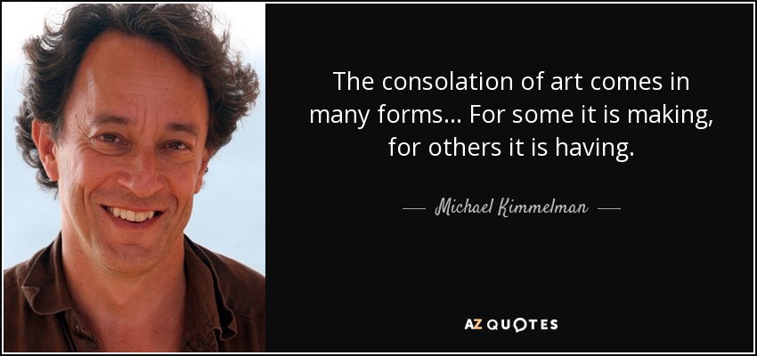 The consolation of art comes in many forms... For some it is making, for others it is having.