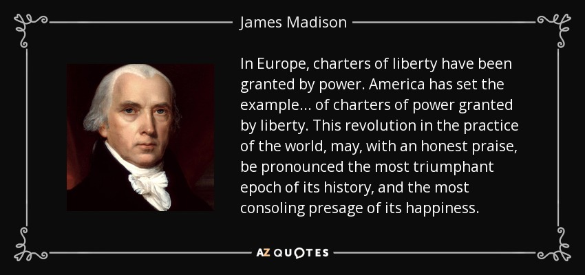 In Europe, charters of liberty have been granted by power. America has set the example . . . of charters of power granted by liberty. This revolution in the practice of the world, may, with an honest praise, be pronounced the most triumphant epoch of its history, and the most consoling presage of its happiness.