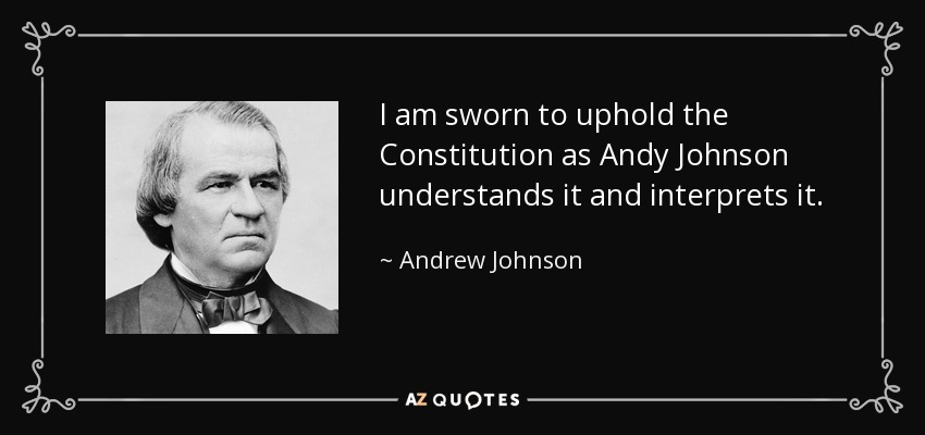 I am sworn to uphold the Constitution as Andy Johnson understands it and interprets it.
