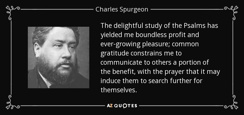 The delightful study of the Psalms has yielded me boundless profit and ever-growing pleasure; common gratitude constrains me to communicate to others a portion of the benefit, with the prayer that it may induce them to search further for themselves.