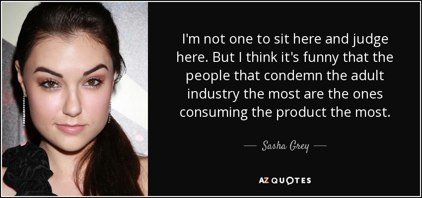 I'm not one to sit here and judge here. But I think it's funny that the people that condemn the adult industry the most are the ones consuming the product the most.