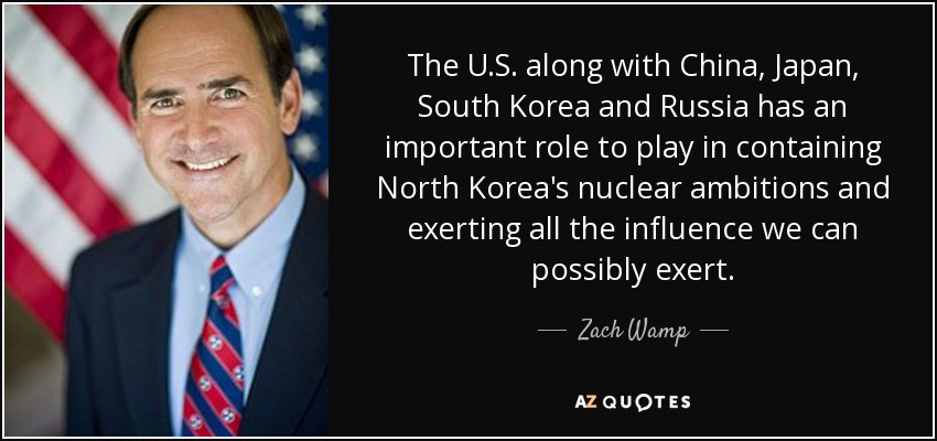 The U.S. along with China, Japan, South Korea and Russia has an important role to play in containing North Korea's nuclear ambitions and exerting all the influence we can possibly exert.