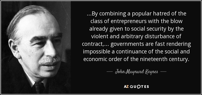 ...By combining a popular hatred of the class of entrepreneurs with the blow already given to social security by the violent and arbitrary disturbance of contract,... governments are fast rendering impossible a continuance of the social and economic order of the nineteenth century.