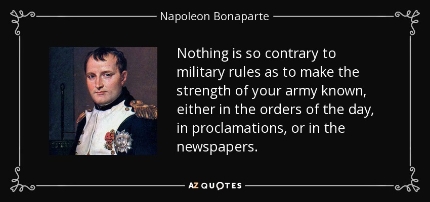 Nothing is so contrary to military rules as to make the strength of your army known, either in the orders of the day, in proclamations, or in the newspapers.