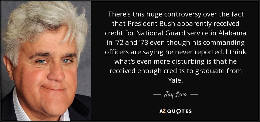 There's this huge controversy over the fact that President Bush apparently received credit for National Guard service in Alabama in '72 and '73 even though his commanding officers are saying he never reported. I think what's even more disturbing is that he received enough credits to graduate from Yale.