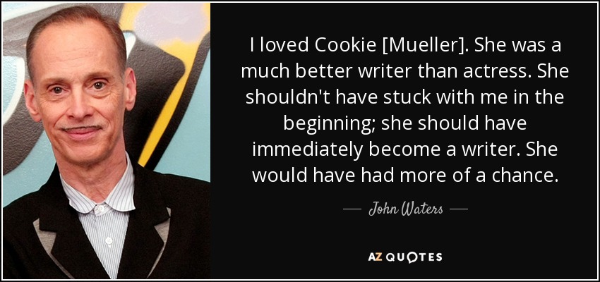 I loved Cookie [Mueller]. She was a much better writer than actress. She shouldn't have stuck with me in the beginning; she should have immediately become a writer. She would have had more of a chance.