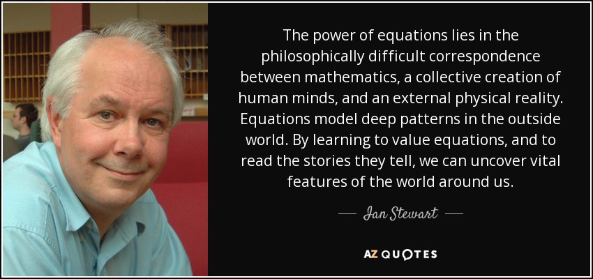 The power of equations lies in the philosophically difficult correspondence between mathematics, a collective creation of human minds, and an external physical reality. Equations model deep patterns in the outside world. By learning to value equations, and to read the stories they tell, we can uncover vital features of the world around us.