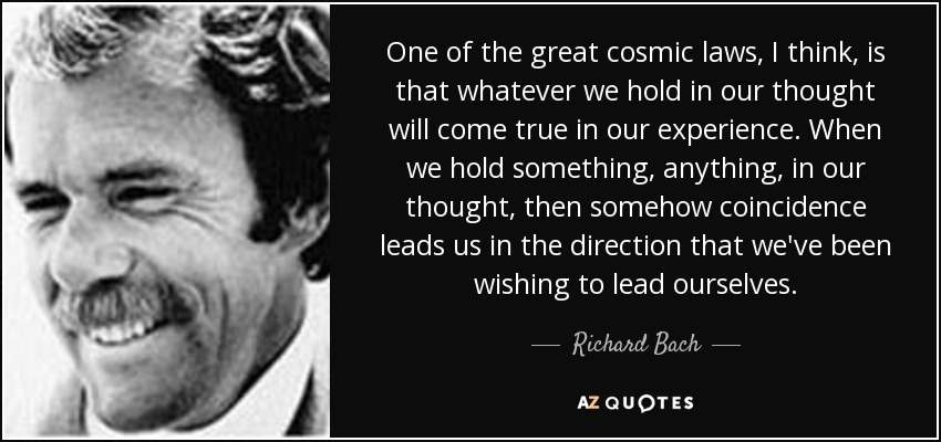 One of the great cosmic laws, I think, is that whatever we hold in our thought will come true in our experience. When we hold something, anything, in our thought, then somehow coincidence leads us in the direction that we've been wishing to lead ourselves.