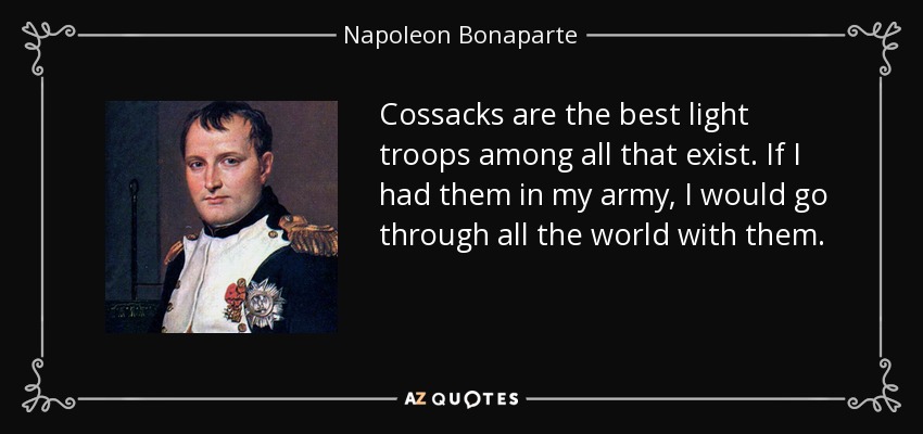 Cossacks are the best light troops among all that exist. If I had them in my army, I would go through all the world with them.