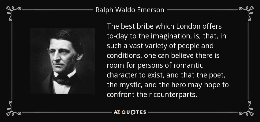 The best bribe which London offers to-day to the imagination, is, that, in such a vast variety of people and conditions, one can believe there is room for persons of romantic character to exist, and that the poet, the mystic, and the hero may hope to confront their counterparts.