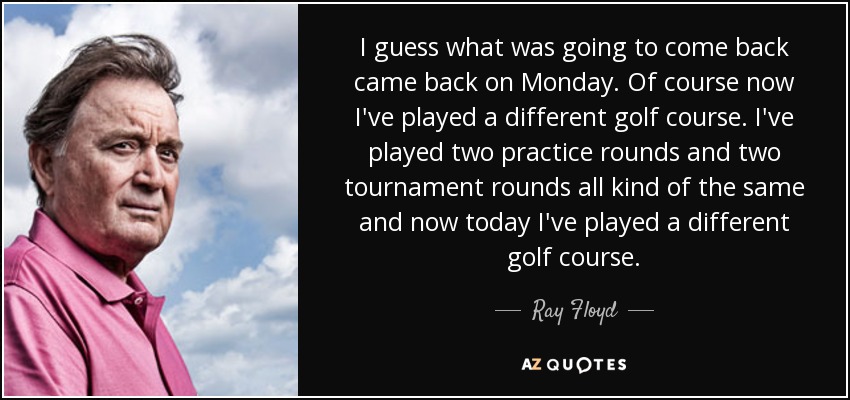 I guess what was going to come back came back on Monday. Of course now I've played a different golf course. I've played two practice rounds and two tournament rounds all kind of the same and now today I've played a different golf course.