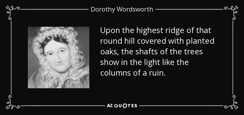 Upon the highest ridge of that round hill covered with planted oaks, the shafts of the trees show in the light like the columns of a ruin.
