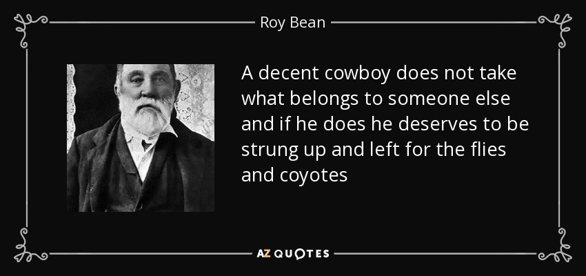 A decent cowboy does not take what belongs to someone else and if he does he deserves to be strung up and left for the flies and coyotes