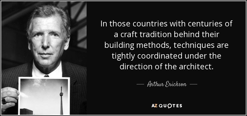 In those countries with centuries of a craft tradition behind their building methods, techniques are tightly coordinated under the direction of the architect.