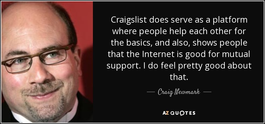 Craigslist does serve as a platform where people help each other for the basics, and also, shows people that the Internet is good for mutual support. I do feel pretty good about that.