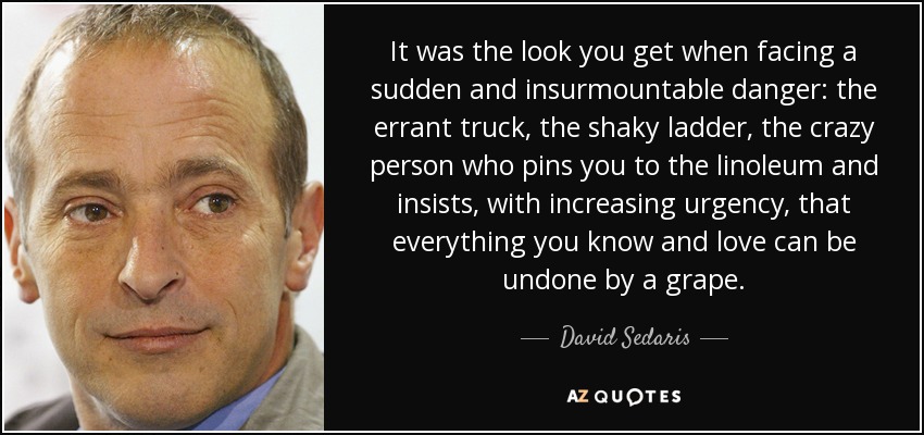 It was the look you get when facing a sudden and insurmountable danger: the errant truck, the shaky ladder, the crazy person who pins you to the linoleum and insists, with increasing urgency, that everything you know and love can be undone by a grape.