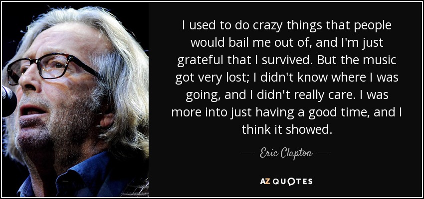 I used to do crazy things that people would bail me out of, and I'm just grateful that I survived. But the music got very lost; I didn't know where I was going, and I didn't really care. I was more into just having a good time, and I think it showed.