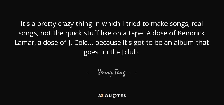 It's a pretty crazy thing in which I tried to make songs, real songs, not the quick stuff like on a tape. A dose of Kendrick Lamar, a dose of J. Cole... because it's got to be an album that goes [in the] club.