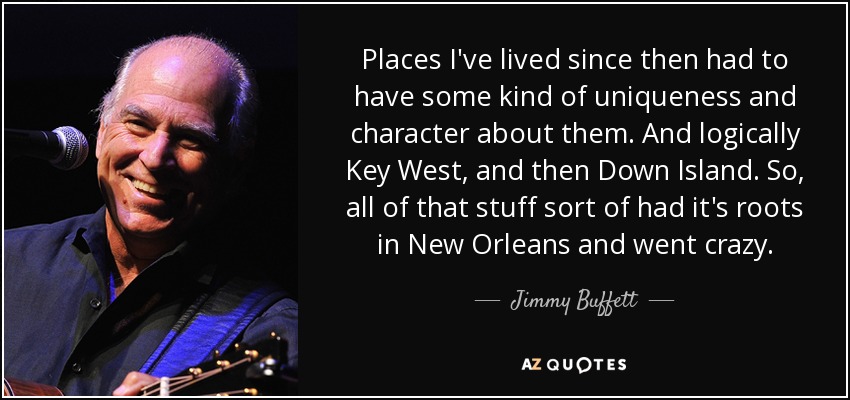Places I've lived since then had to have some kind of uniqueness and character about them. And logically Key West, and then Down Island. So, all of that stuff sort of had it's roots in New Orleans and went crazy.