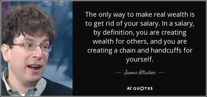 The only way to make real wealth is to get rid of your salary. In a salary, by definition, you are creating wealth for others, and you are creating a chain and handcuffs for yourself.