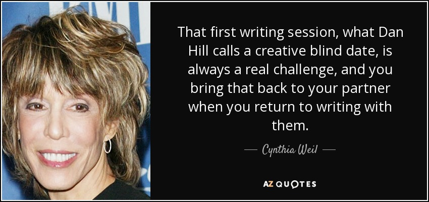 That first writing session, what Dan Hill calls a creative blind date, is always a real challenge, and you bring that back to your partner when you return to writing with them.