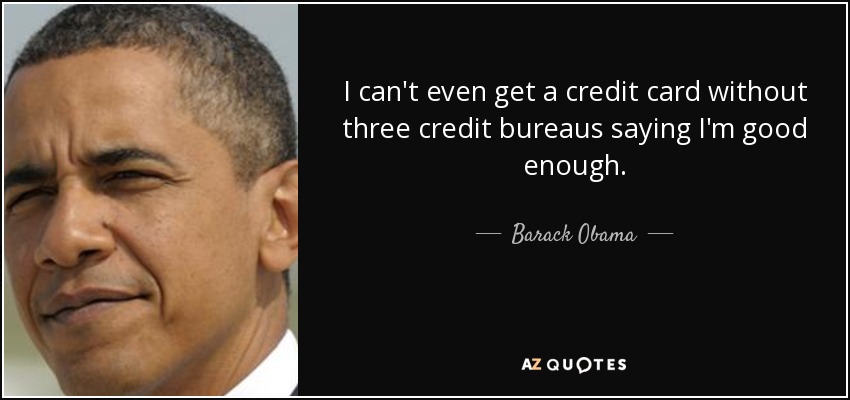 I can't even get a credit card without three credit bureaus saying I'm good enough.
