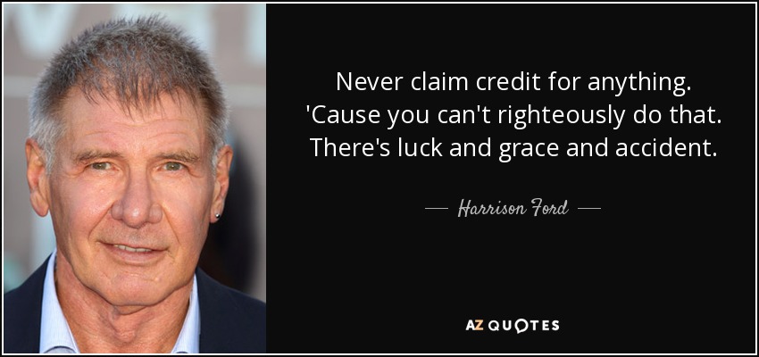 Never claim credit for anything. 'Cause you can't righteously do that. There's luck and grace and accident.