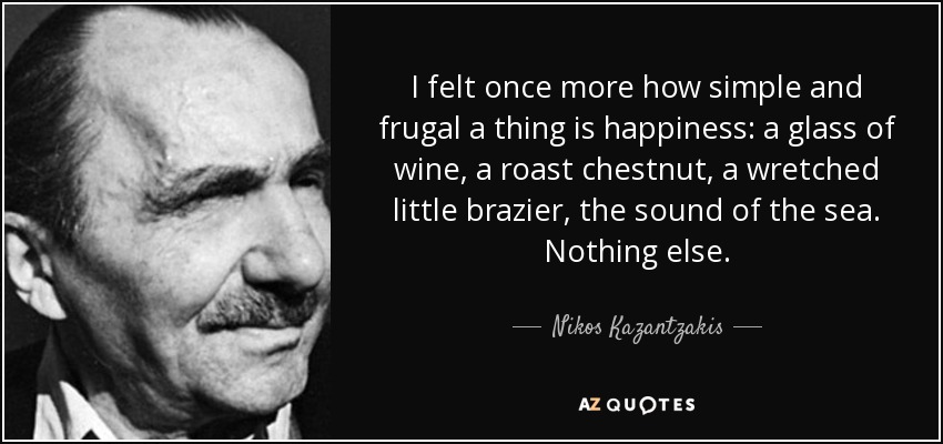 I felt once more how simple and frugal a thing is happiness: a glass of wine, a roast chestnut, a wretched little brazier, the sound of the sea. Nothing else.